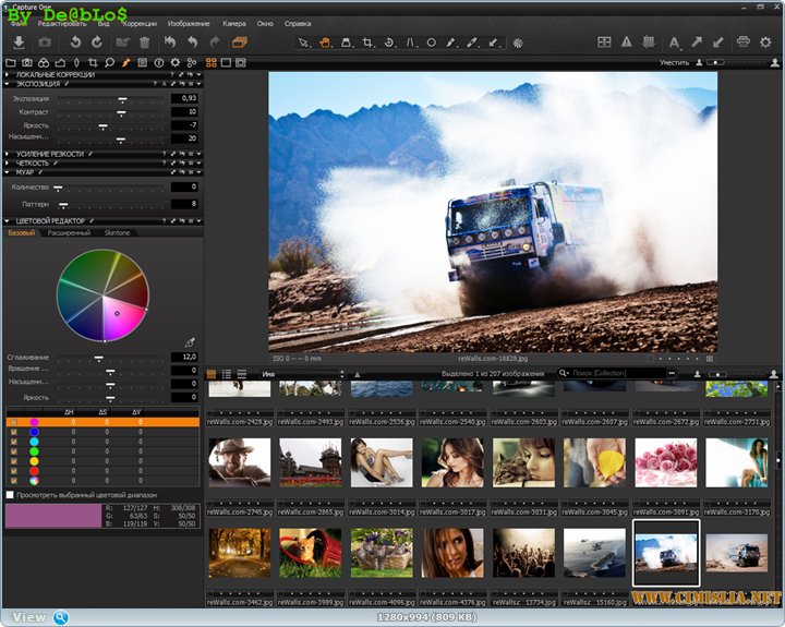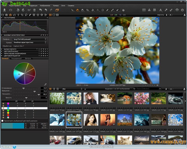 Capture One Pro - один из самых мощных профессиональных конверторов цифровых фотографий в формате RAW с поддержкой широкого модельного ряда современных фотокамер. Программа позволяет в одиночном и пакетном режимах конвертировать "на лету" файлы в полноразмерный TIFF (RGB / CMYK) и JPG форматы, корректировать баланс белого, эффективно обрабатывать "пересвеченные" и "недосвеченные" снимки, тонко настроить резкость снимка и устранять цветные шумы.