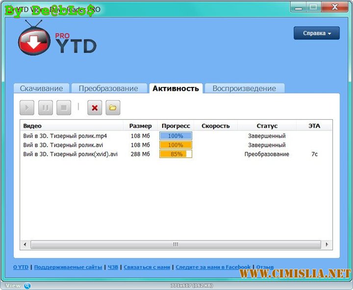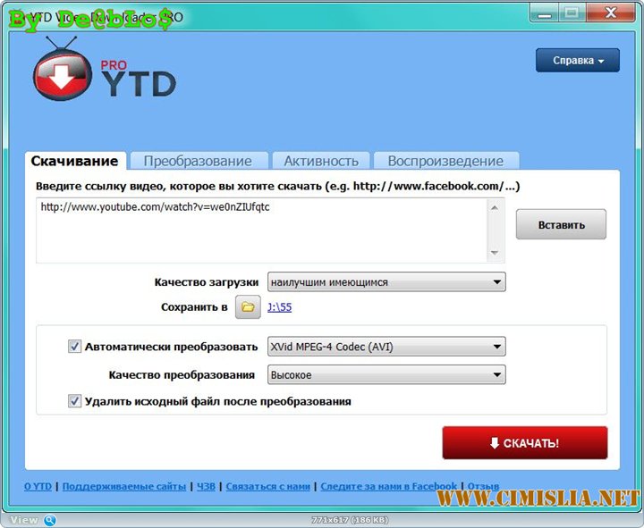 YouTube Video Downloader PRO - простая и легкая в использовании программа, которая предназначена для загрузки и последующего просмотра роликов с популярных сервисов видеообмена YouTube, Facebook, Google Video, Yahoo Video и пр. Для скачивания необходимо ввести ссылку на видео, которое вы хотите скачать и указать папку для сохранения клипа. Также YouTube Downloader позволяет конвертировать видео в различные форматы (например MP3, MP4, AVI, 3GP, MPEG), которое затем можно просматривать на различных мобильных устройствах (iPod, iPhone, PSP и iTunes). Присутствует возможность воспроизводить загруженные видеофайлы при помощи интегрированного проигрывателя.