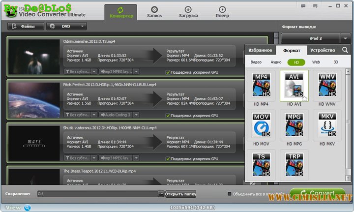 Тип лекарства: замена файловРазмер 38.27 MBСистемные требования:Описание:iSkysoft Video Converter - позволяет конвертировать все типы видео файлов из одного формата в другой формат и извлекать аудио дорожки из видео. Данная программа может конвертировать WMV в MPEG, AVI в MPEG, WMV to MPEG и т.д. и поддерживает следующие видео форматы: MP4, MOV, 3GP, AVI, WMV, RM, MPEG, ASF и т.д. Также программа позволяет вам устанавливать яркость видео, контраст, насыщенность, подрезать видео, в пакетном режиме конвертировать видео файлы, и объединять различные файлы в один файл.• Конвертирует практически все видео форматы: iSkysoft Video Converter может преобразовывать WMV в MPEG, конвертировать AVI в MPEG, быть MPEG конвертером и т.д. Данная программа – это профессиональный все в одном видео конвертер и конвертер из видео в аудио.
