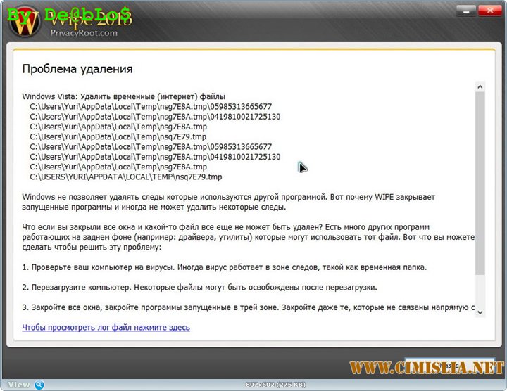 Wipe удаляет все следы вашей онлайн и оффлайн деятельность в Windows XP / Vista / 7 и 8. В наиболее популярных браузеров (Google Chrome, Internet Explorer, Mozilla Firefox, Opera), а также во многих других программ, которые ежедневно используются. WIPE поставляется с бесплатными обновлениями и регулярно предлагает новые версии, которые позволяет ему распознавать и удалять треки в любом недавно выпустила программное обеспечение.