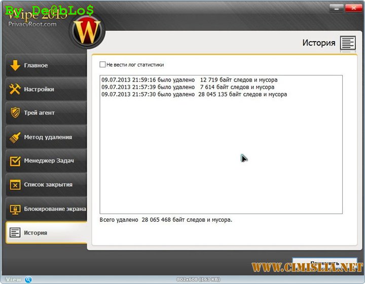 Wipe 2013 PRO - это мощный и простой в использовании инструмент для очистки вашей системы от всевозможного мусора, который позволяет защитить вашу конфиденциальность, очищая историю браузера и кэш, index.dat файлы, куки-файлы, автозаполнения, историю, временные интернет-файлы и многое-многое другое. Эта программа также удаляет любые другие следы, которые вы оставляете после использования вашего компьютера. Wipe 2013 включает в себя US DoD 5220.22-M метод, метод Гутмана (полный 39 шагов) и русский ГОСТ метода, чтобы полностью стереть ваши личные и конфиденциальные данные, делая удаленные следы невосстановимыми с помощью специальных программ.Интернет не является безопасным: хакеры всегда пытаются украсть ваши пароли, браузеры используют куки-файлы, чтобы отслеживать ваши привычки, Windows собирает тысячи мусорных файлов ... Именно поэтому пользователи нуждаются в защите против всех них. Программное обеспечение для защиты частной жизни была разработана, чтобы хранить личную информацию пользователя в безопасности, пока они просматривают в Интернете. С помощью таких программ можно безопасно удалить личные треки в Интернет, ненужные файлы или любые другие конфиденциальные данные.