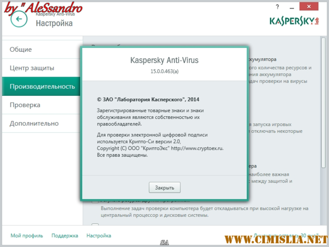 √ Разработчик: ЗАО «Лаборатория Касперского»